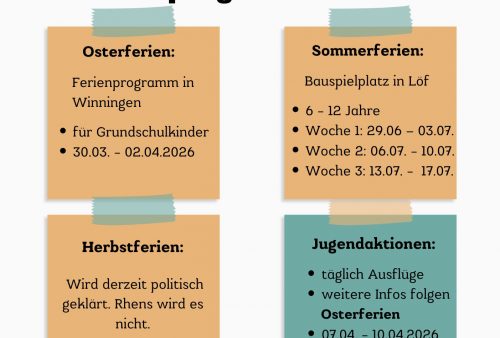 Auch im Jahr 2026 bieten wir Ferienprogramme für Grundschulkinder an. Die Anmeldung ist ab dem 11.01.2026 um 14:00 Uhr auf unserem Anmeldeportal […]