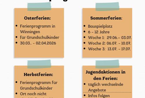 In der zweiten Woche der Osterferien (22.04.-25.04.2025) haben wir verschiedene Ausflüge und Aktionen für Jugendliche ab 12 Jahren (teilweise ab 10 Jahren) […]
