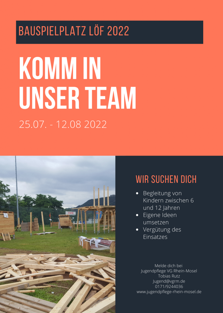 Werde Teamer_in beim Bauspielplatz in Löf und begleite Kinder im Alter zwischen 6 und 12 Jahren. Ein tolles Projekt, eine angenehme Atmosphäre und ein kleines Taschengeld erwarten dich.