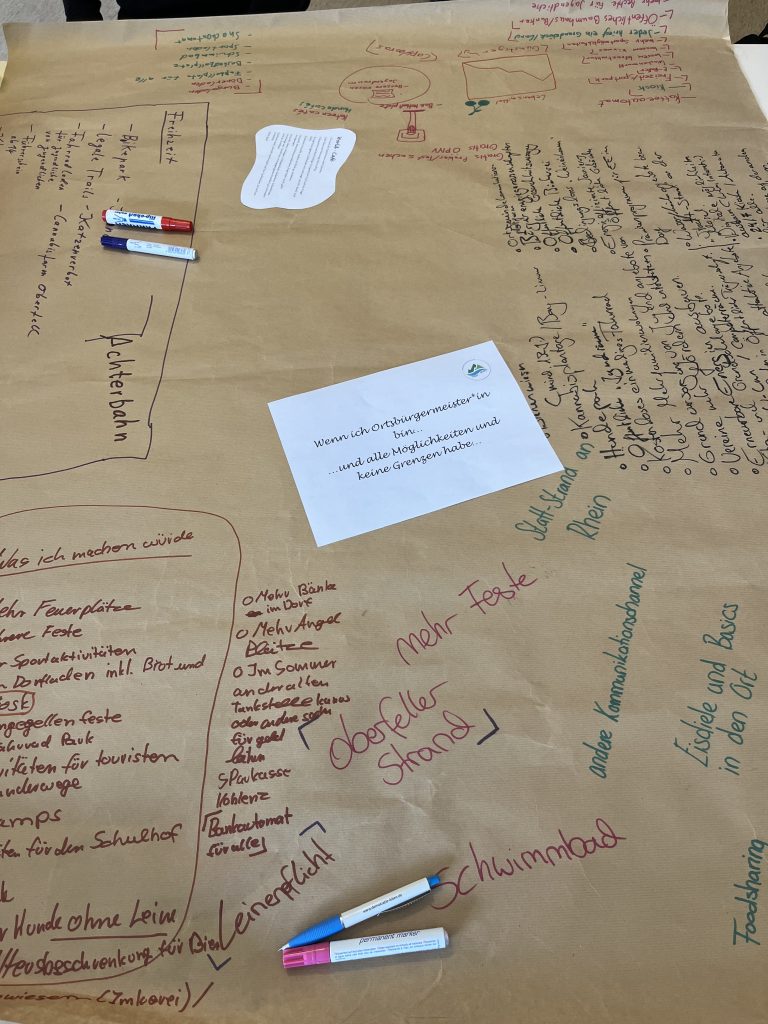Um 13 Uhr ging es mit einer Begrüßungs – und Kennenlernrunde los. Im anschließenden Jugendforum setzten sich die Jugendlichen mit den Fragen „Was muss Politik tun um jugendgerechter/attraktiver/interessanter/präsenter zu sein?“ „Was kann die Verbandsgemeinde/Ortsgemeinde tun um klimagerechter zu werden?“ und „Wenn ich Ortsbürgermeister*in wäre und alle Möglichkeiten und keine Grenzen hätte…“ auseinander. Hier war der Kreativität keine Grenzen gesetzt und es wurden viele Ideen und Anregungen gesammelt.