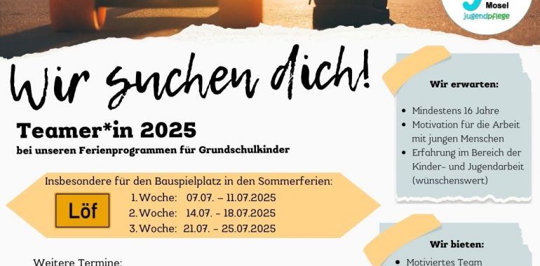 Werde Teamer*in bei einem oder mehreren unserer Ferienprogramme und begleite Kinder im Alter zwischen 6 und 12 Jahren.